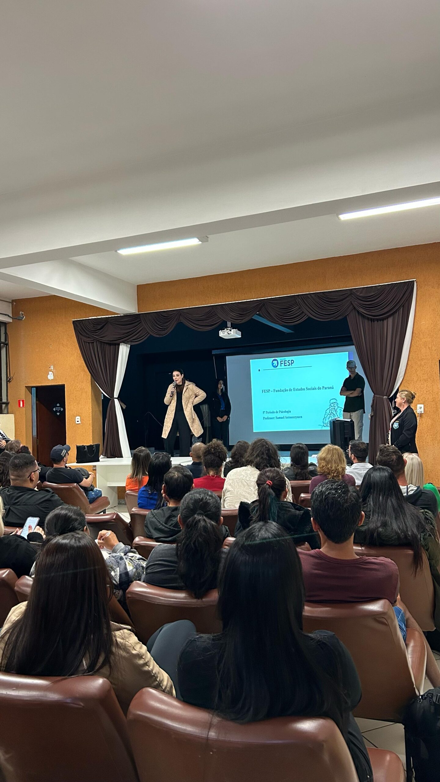 “Queridos alunos, professor Samuel e coordenação da FESP, agradecemos pelo excelente trabalho, pelas oficinas bem organizadas e pelo carinho demonstrado. Foi um momento de integração e aprendizado. Um abraço com muito carinho”.